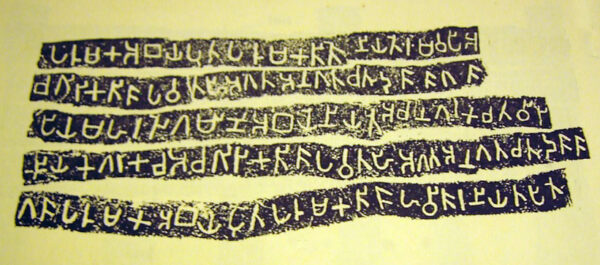 The Kharosthi Script (also known as ‘Indo-Bactrian’ script) was a writing system originally developed between the 4th and 3rd century BCE. Kharosthi was employed to represent a form of Prakrit (Middle Indic), an Indo-Aryan language.